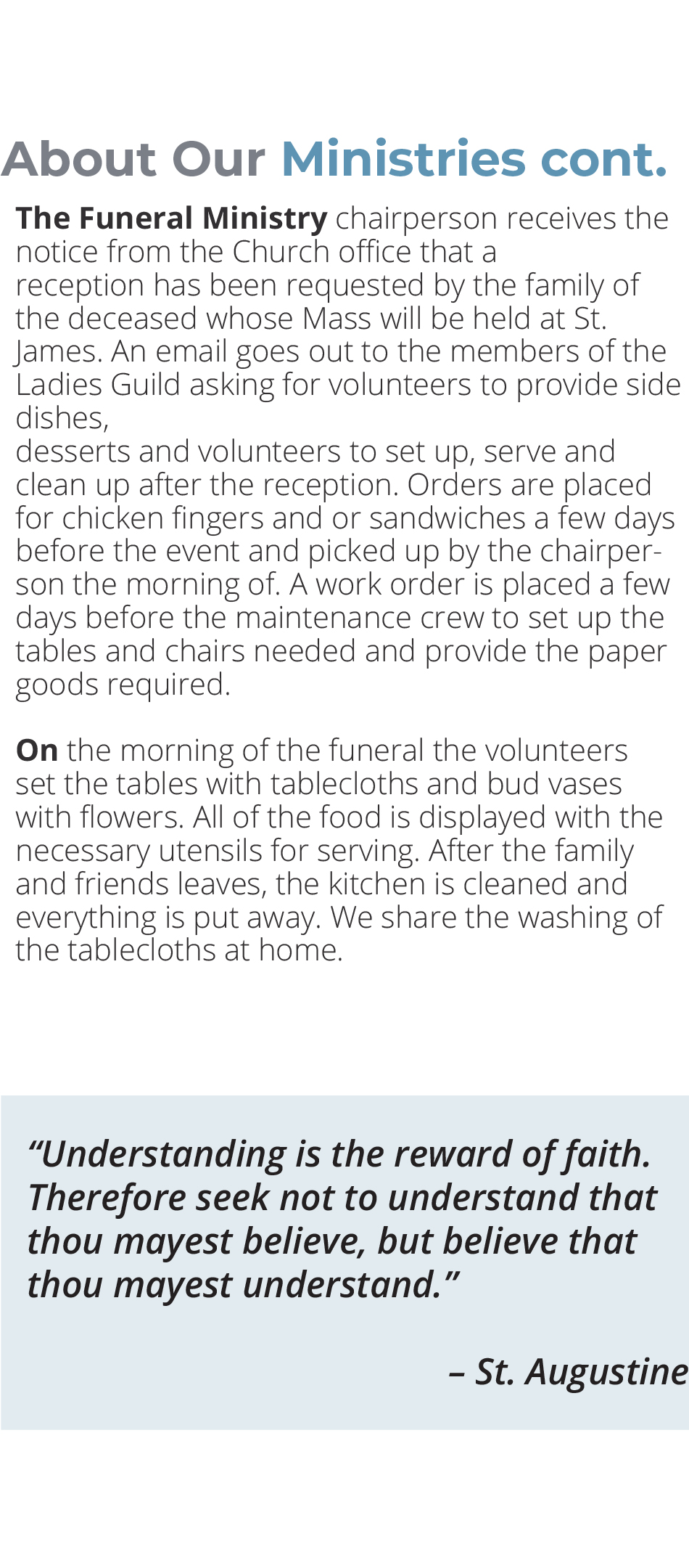 Central to the mission of the St. James Ladies Guild is a deep-seated commitment to service and charity. Understanding the importance of extending compassion beyond the church walls, the guild actively participates in a range of philanthropic activities. These often include fundraising efforts to support various church projects, organizing outreach programs to assist the less fortunate in the community, and providing aid to those in need. The guild’s dedicated work in these areas embodies the true spirit of Christian giving and positively impacts countless lives within the wider community. Their charitable endeavors are not just acts of kindness but are a tangible expression of their faith in action.